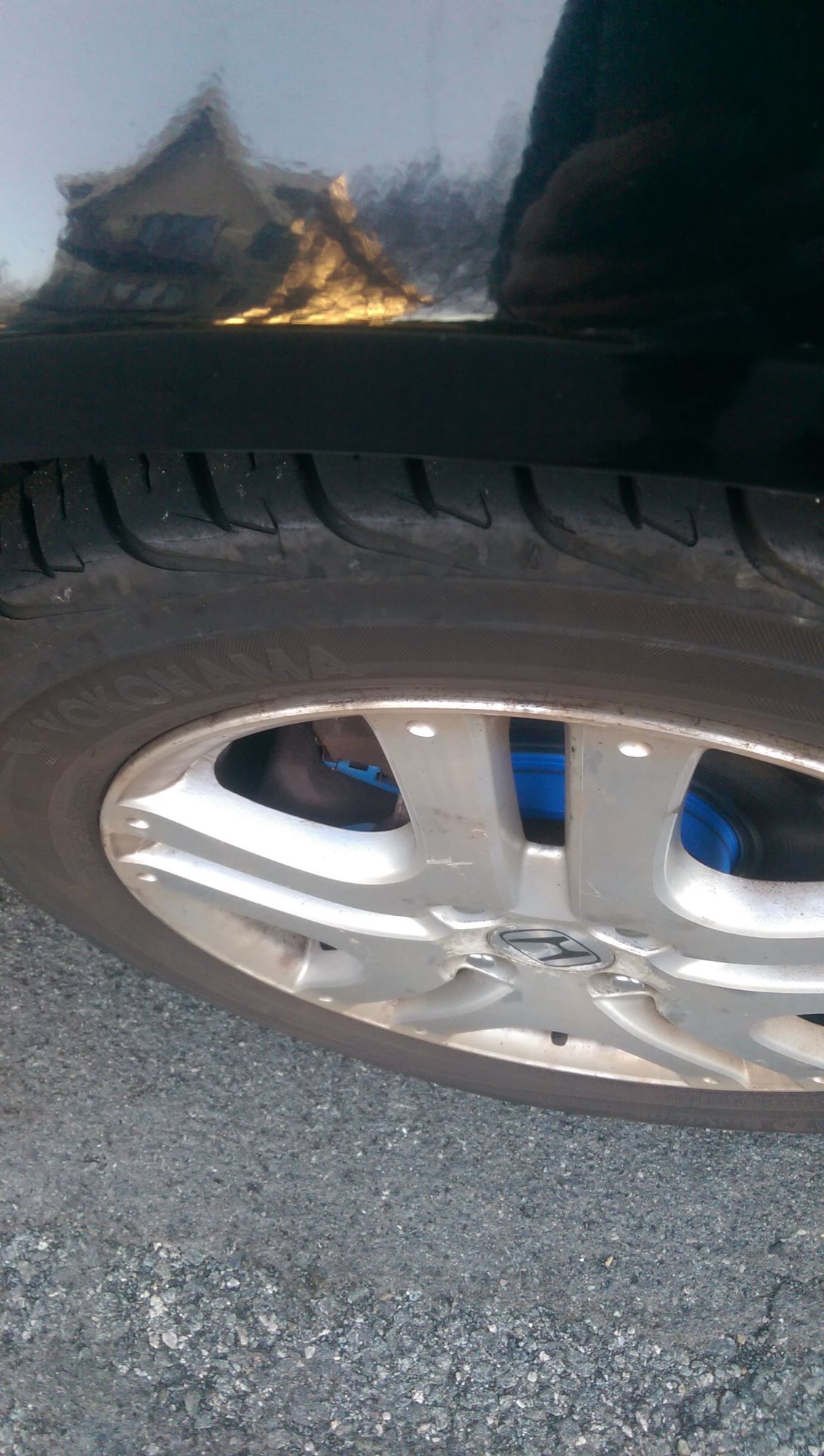 Excuse the winter wheels. The endless rotors that I have are blank but the middle is super blue. The pads are also ridiculously blue. They feel great too!