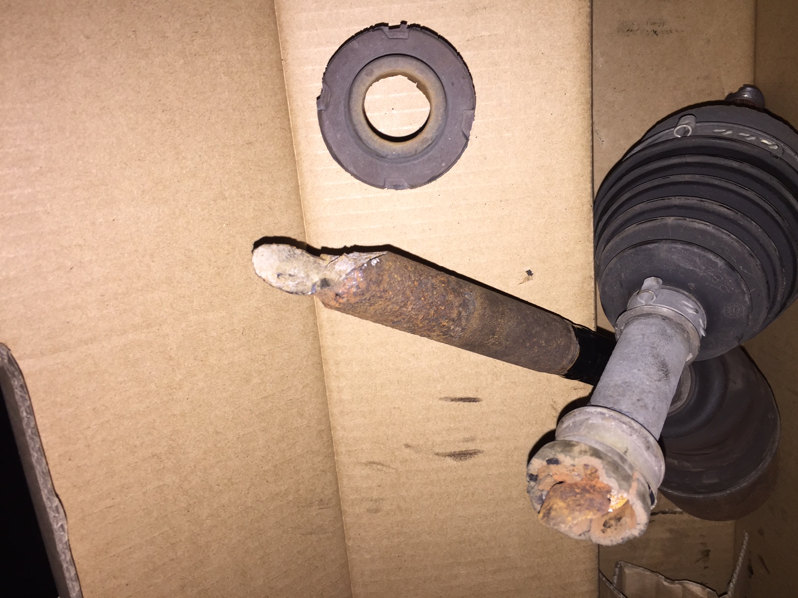 I'm in the rust belt, as you are. Those axles can and do break in half due to rust under the rubber damper, as described.
