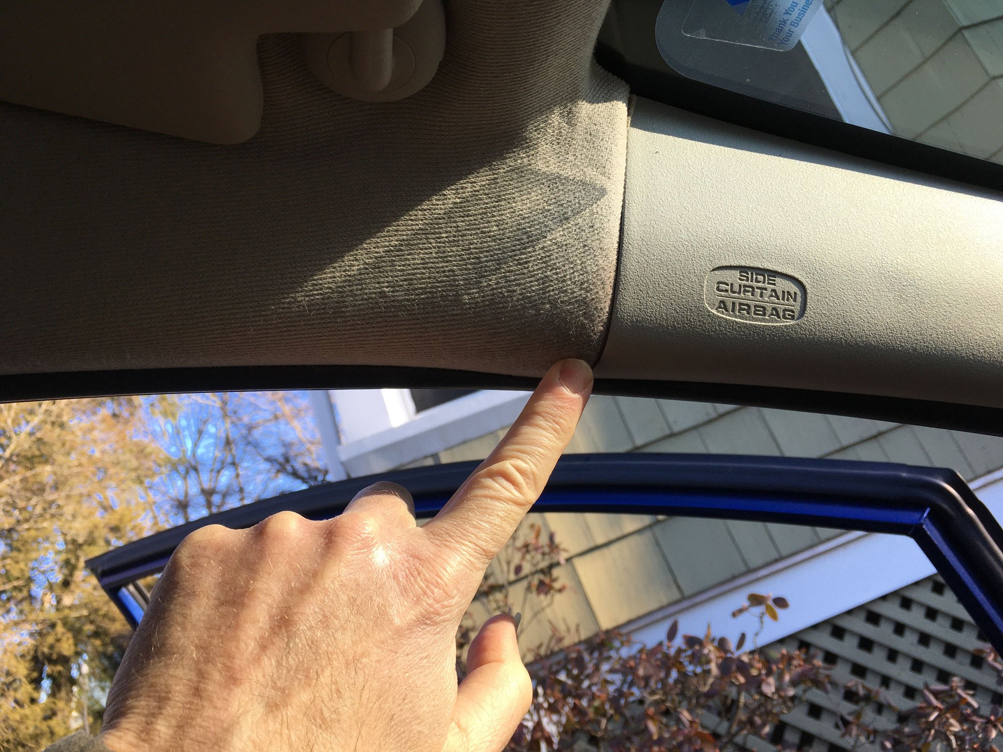 Hey folks. My wife has complained that, in the rain, her 2013 Fit has been dripping water onto her left knee. I assumed it was the door seal, but when I caught it in the act after it was parked in the driveway in the rain, the water was dripping from where I'm pointing to in the photo, the seam where the plastic covering the side curtain airbag meets the big headliner piece. Directly above that is the windshield. Am I correct that it's reasonable to assume the leak is originating from the upper left corner of the windshield? I don't see where else it could be coming from. I've searched her on the form and read many of the leak-related posts, but didn't see anything that screamed that this is common.