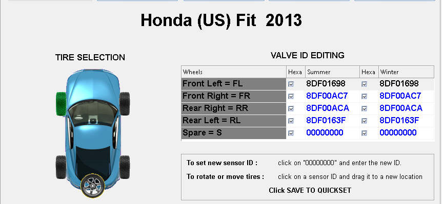 I bought a ATEQ-QuickSet tool. I can see all the sensor ID’s for each wheel.