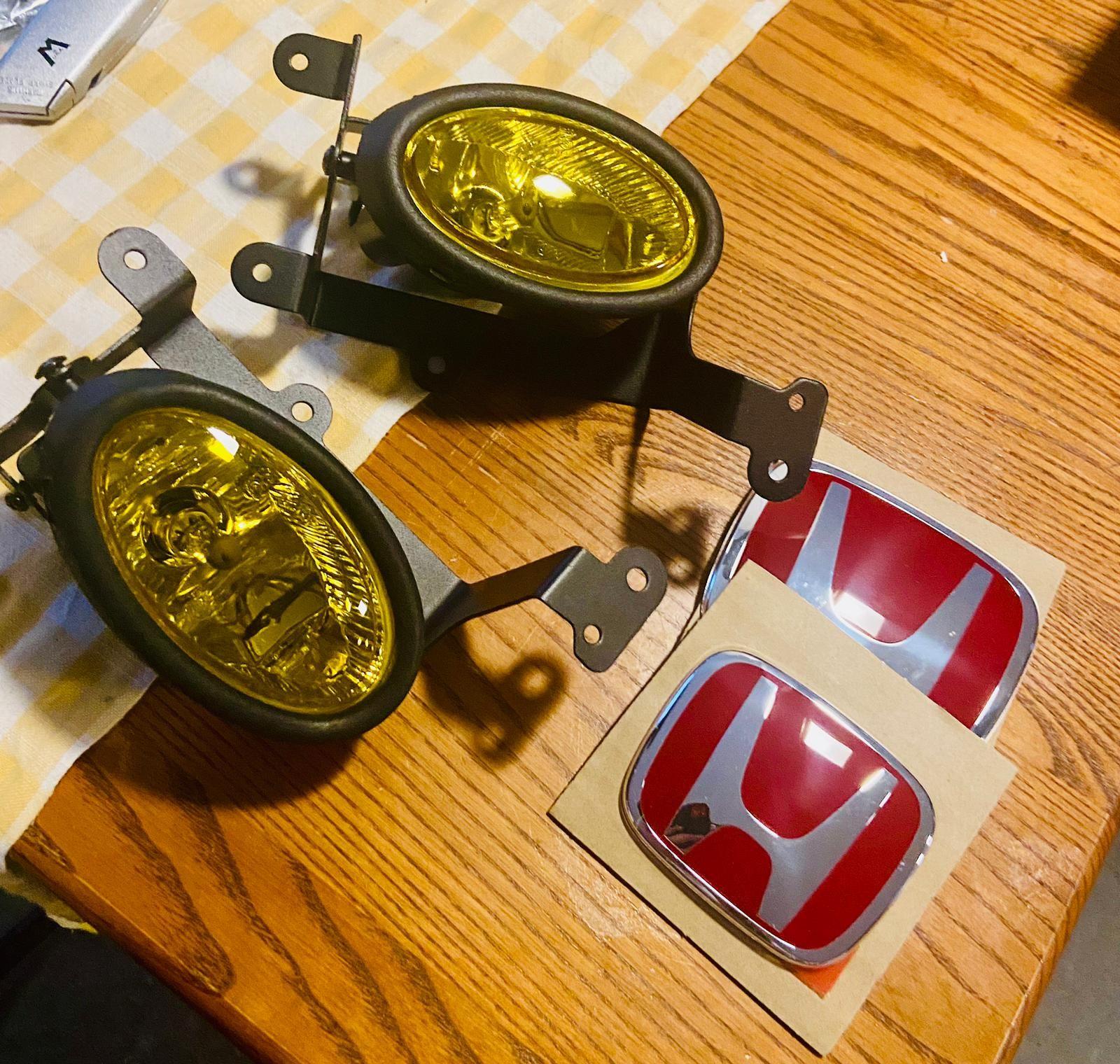 Got some new goodies in the mail today. The emblems and fogs will be installed this weekend along with tinted windows. I also got a quote from a local Honda garage to have them swap a K24A2 and a 06 Civic Si transmission in for my car. So now it looks like mid 2025 will be when I get the motor swapped!