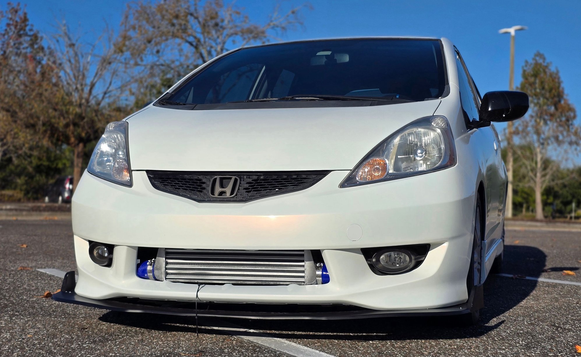 Hey everyone I'm new here just want to give a quick rundown on why I'm here. I was given a 2009 Honda fit sport for free, it is automatic unfortunately. However this was literally going to be a beat up work car just because they could haul quite a bit of stuff in the back. But to be honest I started to enjoy driving this thing more and more everyday. I used to be into all motor Hondas when I was a kid then got into RX7 and big turbos and so on and so forth. And then I got older and completely out of the game got into motorcycles. Well how about 6 months ago I was hit on my Cafe racer inspired build 2000 BMW r1100r and told the motorcycle and put me in the trauma center. My whole family was terrified and doesn't want me to step foot on a bike again. However my first built bike I still have my garage which is a 1979 Honda CB650 I built for my dad that he gave to me. It's the first Cafe racer I've ever built and it's gorgeous I love it. One day I will ride again. However for now I couldn't help but restore this Honda fit from its beaten bothered body silver dull paint with dents and dings all over. To fixing all the body work everywhere every panel perfectly straight and painted a three-stage white pearl myself with a copper interference Pearl. Then I decided to strap a GT 2871 on it and that's my current process right now. It is running into driving I have not gone over 2psi until my Ktuner V2 arrives tomorrow. I will start to enter a base map in the vehicle until my three bar map sensor arrives in a week. Also will be arriving a five lb spring adjustable internal wastegate. With my manual boost controller I will turn it to 7 to 8 PSI after I get my base tune in. So I figured I just want to post some stuff in here and want to have questions I know where to go. Here's a quick specification list so far Stock internals 248,000 MI Turbo gt2871 journal bearing billet aluminum compressor wheel internal wasting Custom mandrel bent v band two and a half inch downpipe flowing into two and a half inch custom mandrel bent exhaust going out to a N1 style l muffler Fuel system converted to return fuel system with a 255 lph pump rdx410cc injectors adjustable boost reference fuel pressure regulator eBay intercooler and piping with couplers Ktuner V2 Aem wideband Maxspeedingrods coilovers Quick disconnect suede steering wheel touge style That's about all I can think of right now LOL I'm just here to say hey