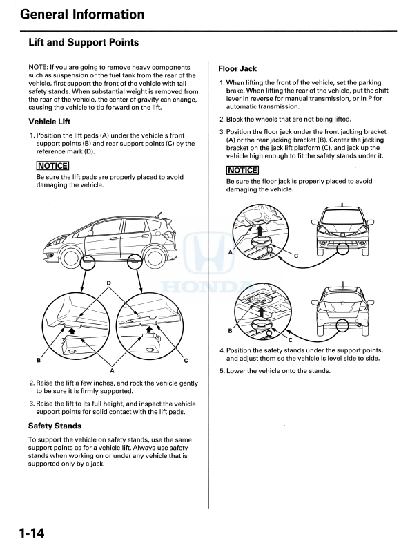 I will paste the official recommendations from the service manual below. On my Fit I regularly use the rear central lift point but my jack can't reach the front central point so I have never tried it.