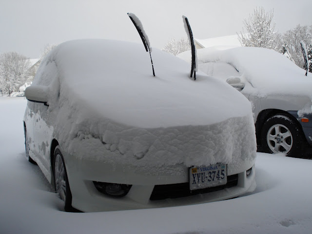 I am too late to take pics... all of the snow blew off. It is really windy right now. I like the snow, and don't mind shoveling a little bit of it. However I hate the ice and we had plenty of it this year. Also I think we got about 3 or 4 inches.