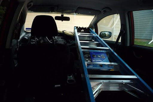 Sweet ladder!! Fit is such an amazing car. Here's my music packed up.