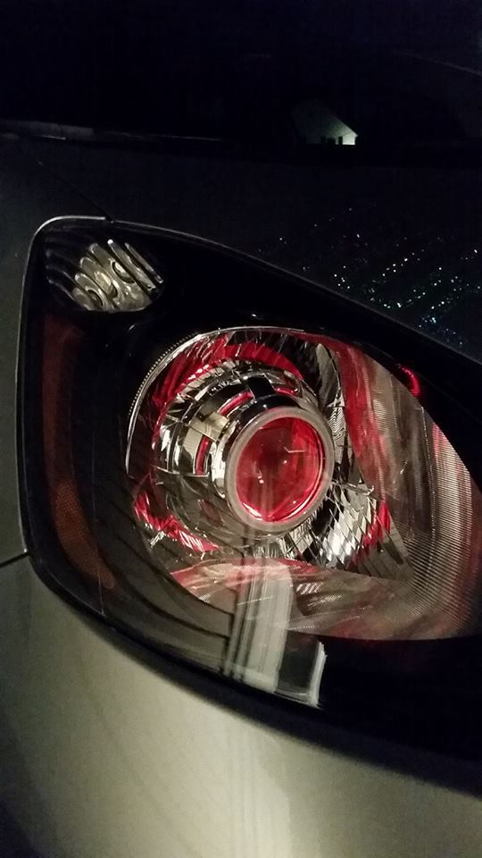 took my headlights apart for the umpteenth time. stupid shroud came loose somehow and the nut holding the projector was loose so the cut off kept on slanting. decided to aluminum tape all the holes in hopes of getting the demon eyes to get brighter.