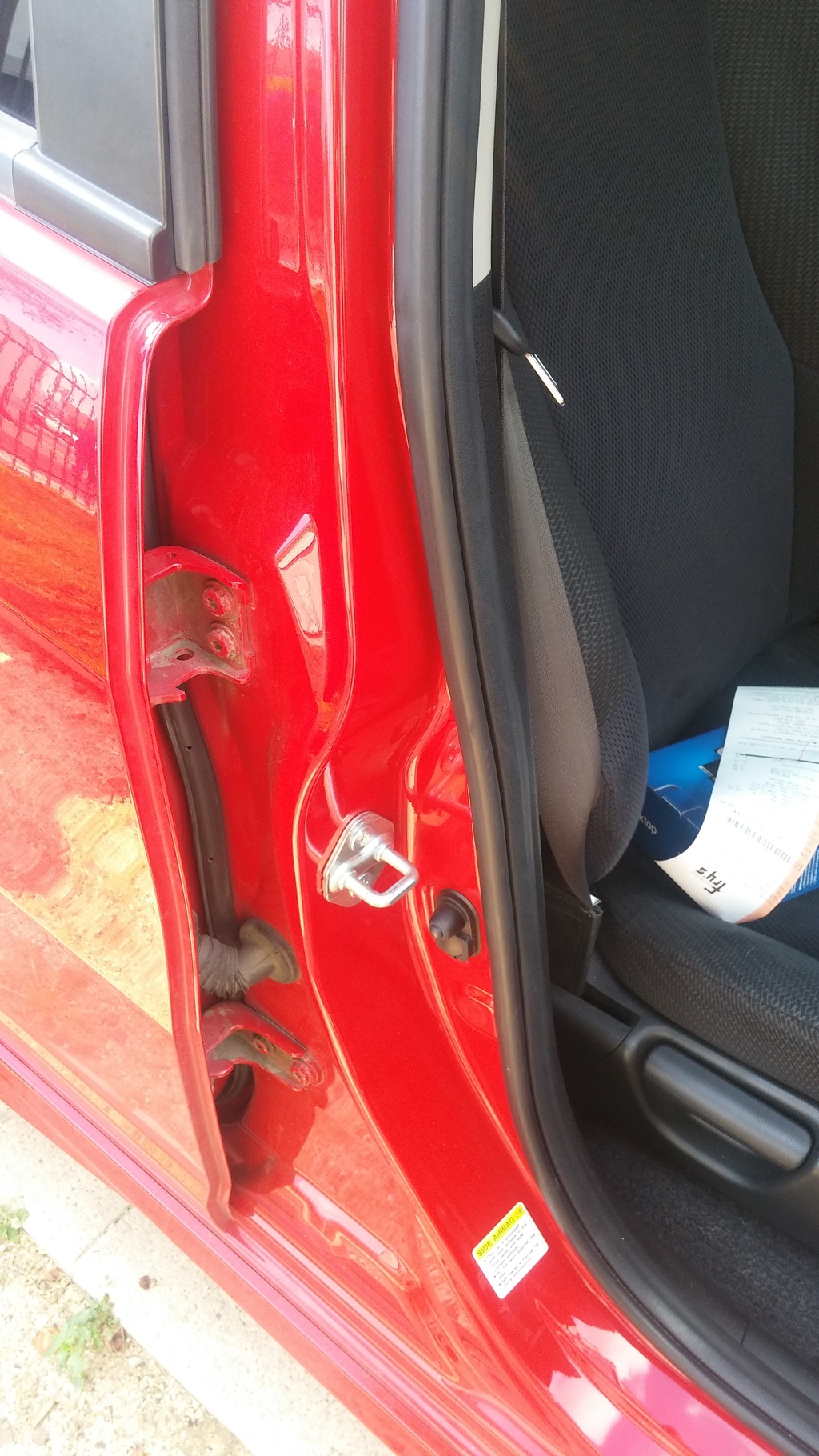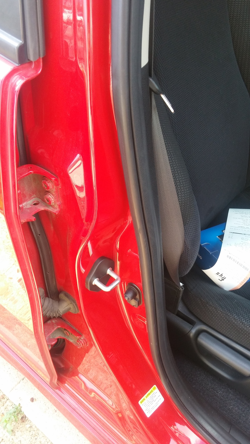 then you have to open the door handle at the headliner,