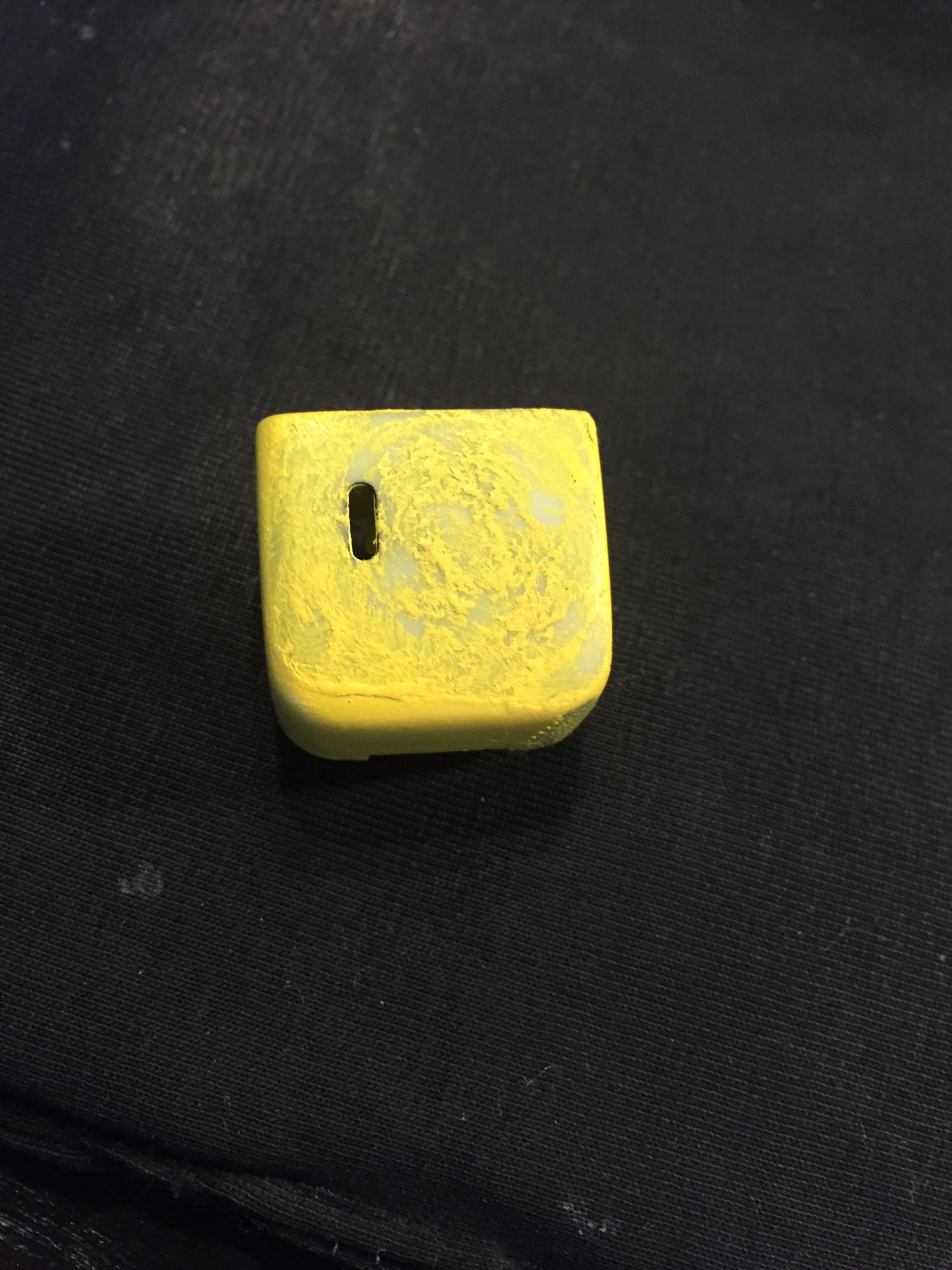 Then I paint it yellow, hoping later I could peel off the label and make the surface transparent to back lighting...