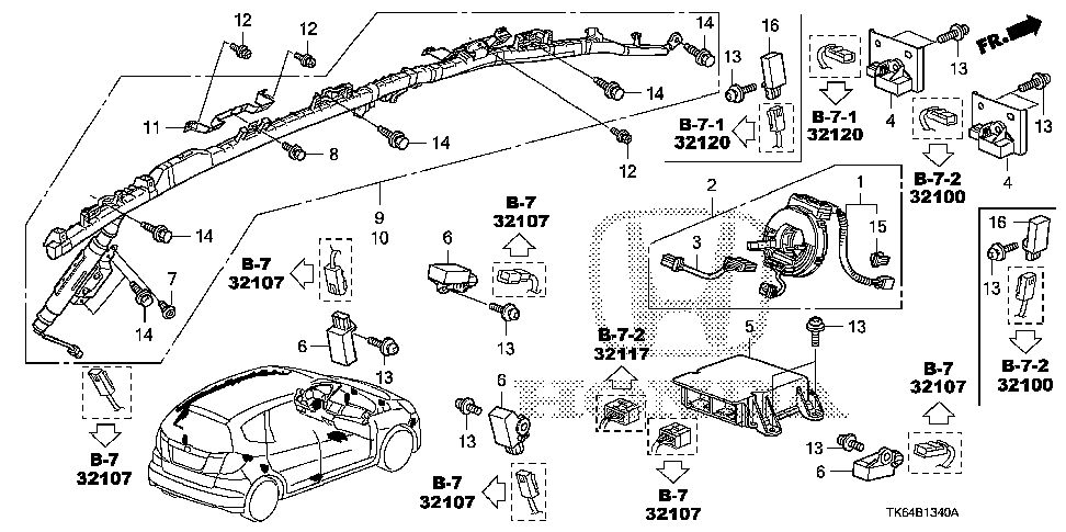 I think the part is Honda P/N 77900-TK6-A21, and is #2 on the "ELECTRICAL / EXHAUST / HEATER / FUEL : SRS UNIT" page of the exploded parts diagrams: