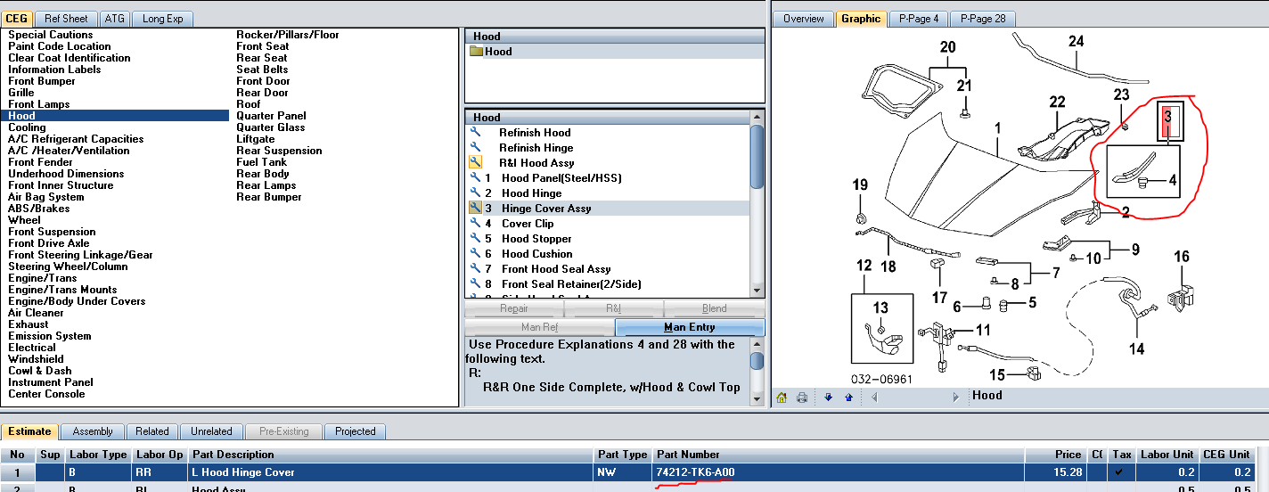The part you are missing is called a hood hinge cover by Honda. Typically the passenger side is the one that works loose and flies off.
