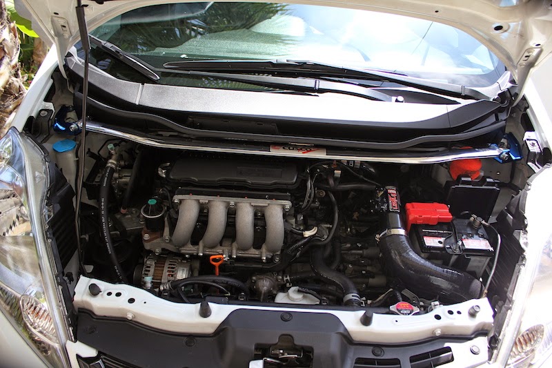 Final pic with all of my recent adds; Mugen Oil Cap, Mugen Radiator Cap, Mugen reservoir cover, Injen Intake, Cusco strut bar.