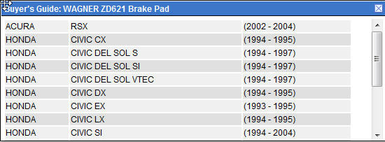 When you start to look at all the backward compatibility it looks like 80% of the Honda over the past 20 years use the same front brake pads.