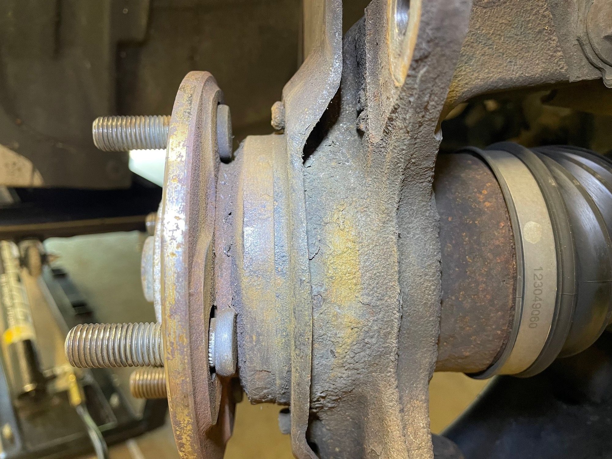 Here is me trying to push out a stud on a 2010. There's no way to grind the stud to make more room, and I do not want to attempt to grind the knuckle either.