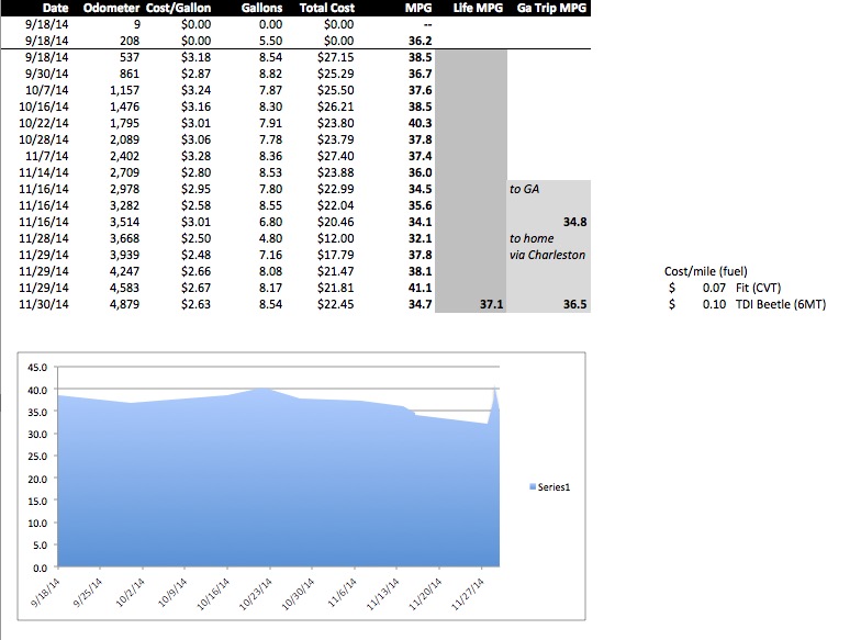 Note the 11/28 and 11/29 MPG numbers. Both interstate driving in similar road and ambient weather conditions (including temperature). 32 vs almost 38…