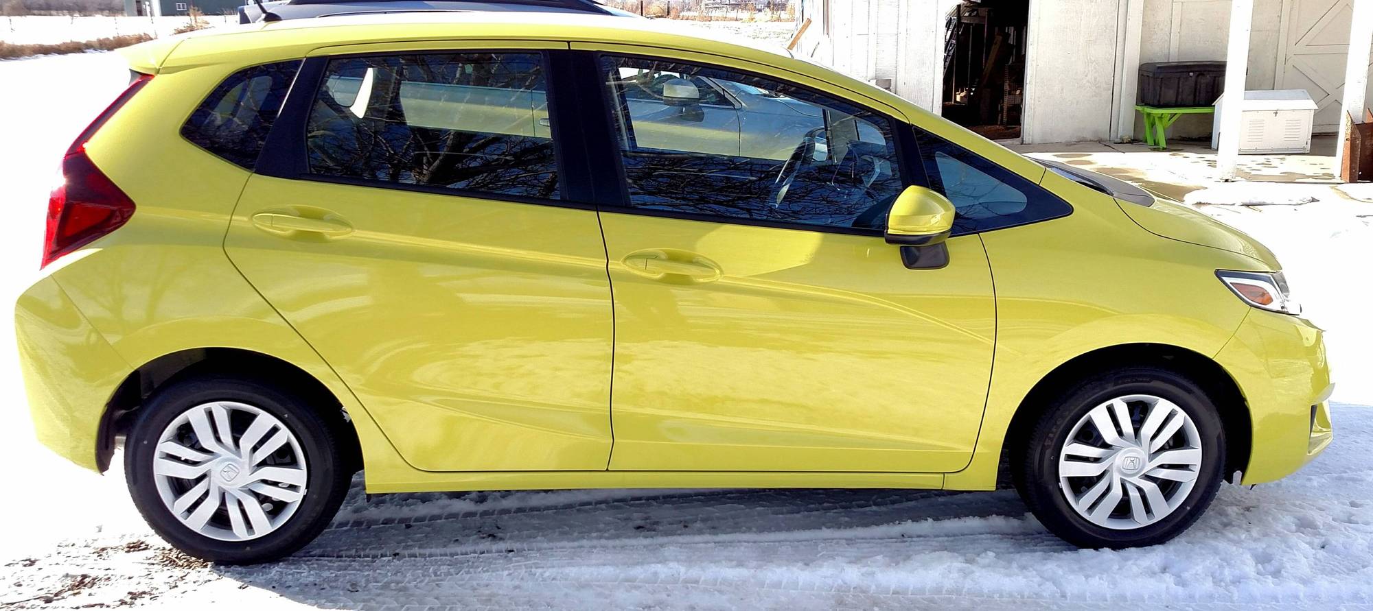 Congrats! The yellow looks great on the Fit and does make it stand out. You'll have no problem finding it in parking lots