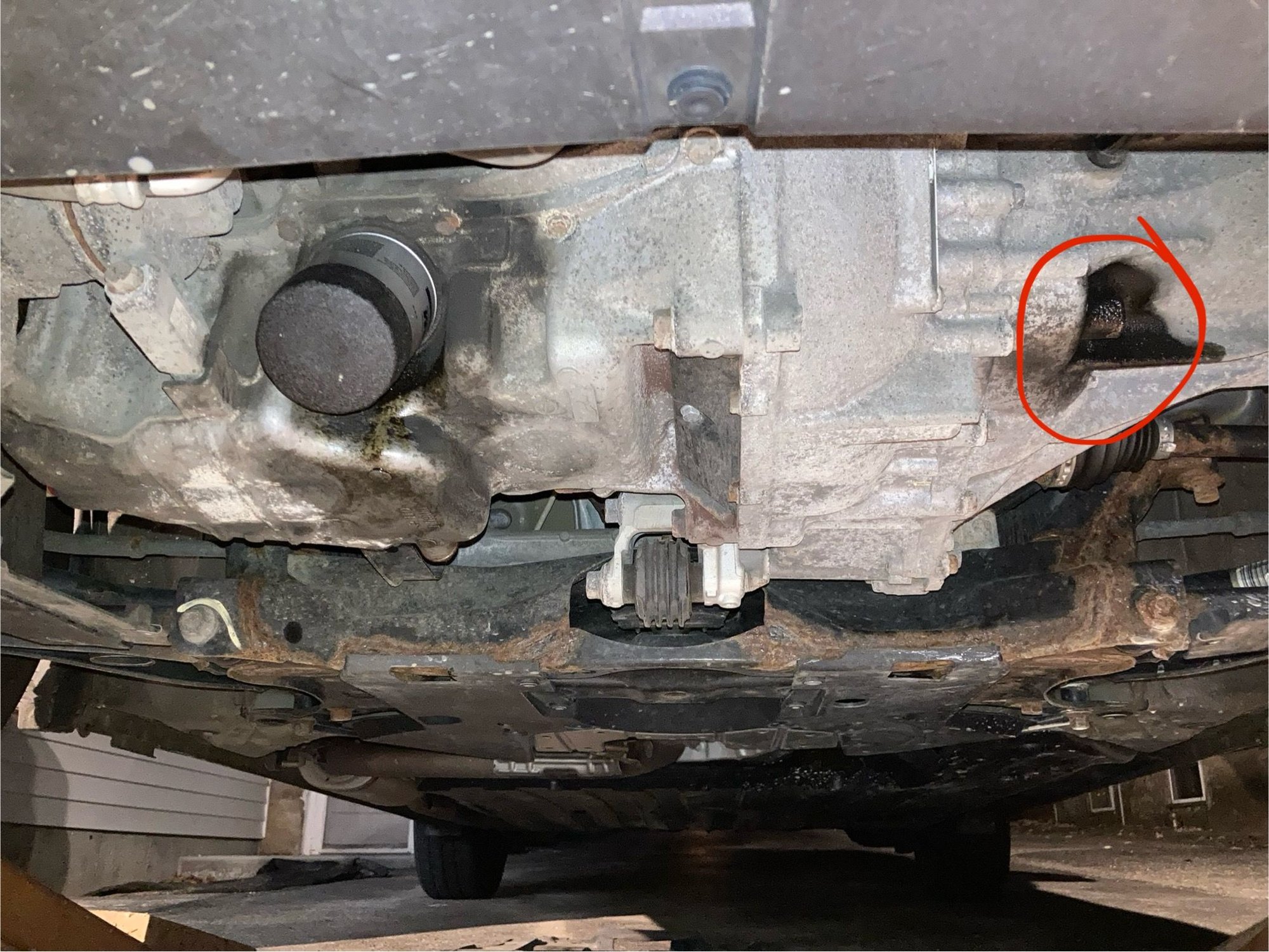 It's threaded, and there's dark, sooty discoloration around it with a bit of a sheen. I've had no mechanical issues. Did I drop a bolt somewhere? Is this some kind of exhaust/drainage valve? YouTube videos of oil changes and transmission work don't address it, but I can see it in those videos - doesn't look like there's a bolt, but the discoloration isn't showing up on others'. I'd appreciate any takes on what I'm missing here.. thanks for reading