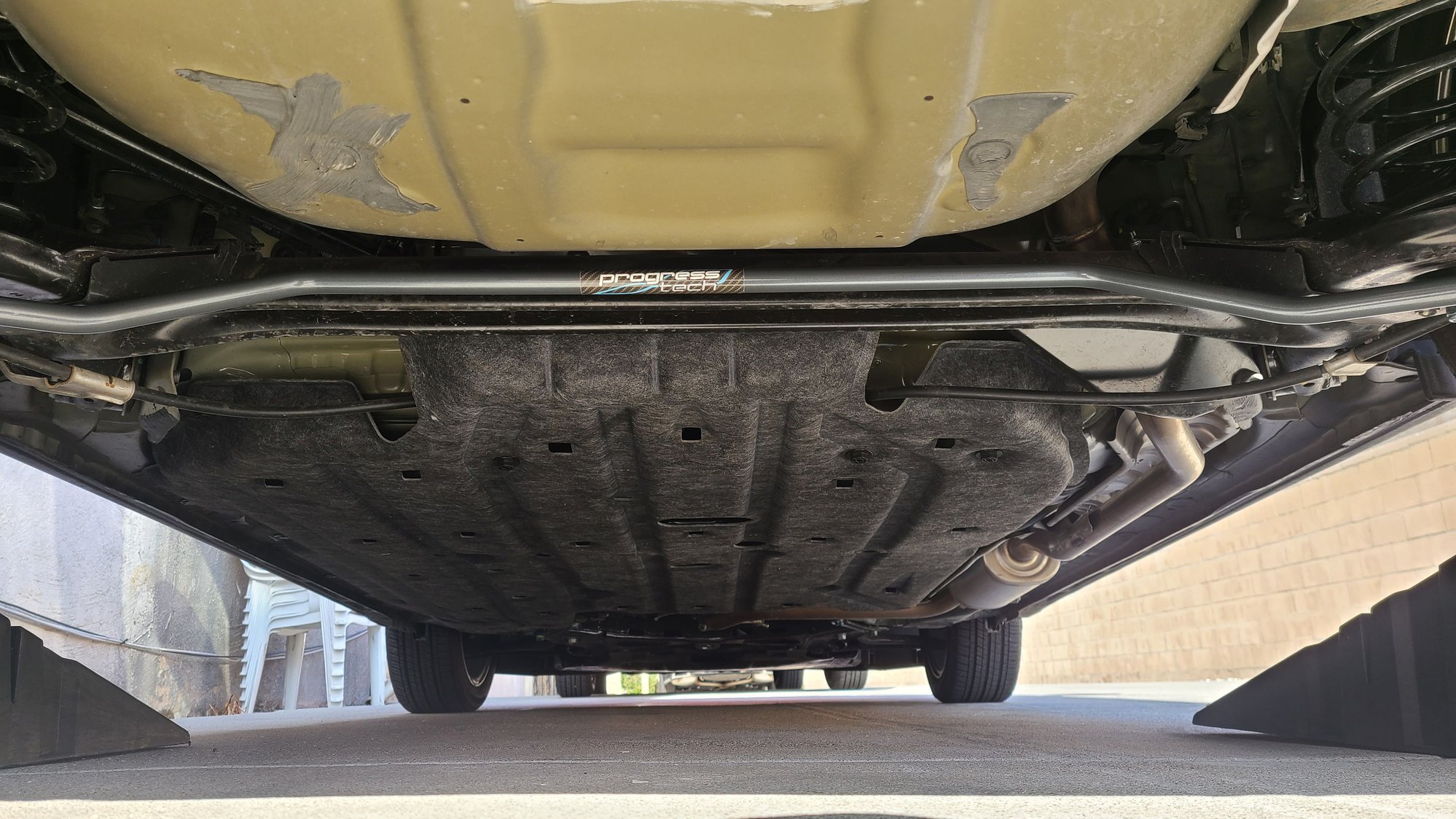 Today I put the car up on ramps and installed the progress rear sway bar. Noticeable difference in the way it drives. My buddy and I also reworked the RS spoiler and it is 10000000% better than the shop left it.