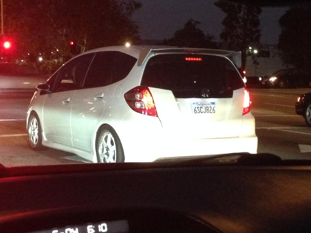 Spotted two modded Fits on the way home today: GE Grey with tint, wing, rims, and different side mirrors on the 5 south in Tustin, and a GD Sport in MR tinted, rims, lowered (Tanabe?), Sport grill, RS badge.