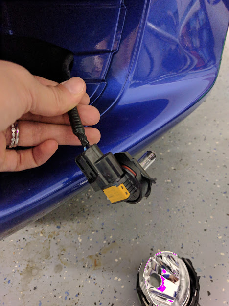 - Plug the new foglight lamp into the harness connector.