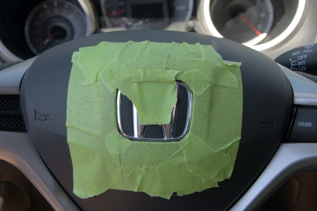 I don't know about you guys, but I absolutely hate the chrome Honda emblem on the steering wheel. I always seem to be driving in just the right direction at the right time of day to get massive glare in my eyes... So I decided to black it out.
