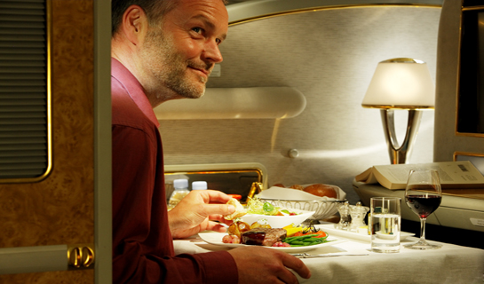 Checking flights from NY-Dubai is roughly $29,300 for a round trip First Class Suite for two, on an A380.