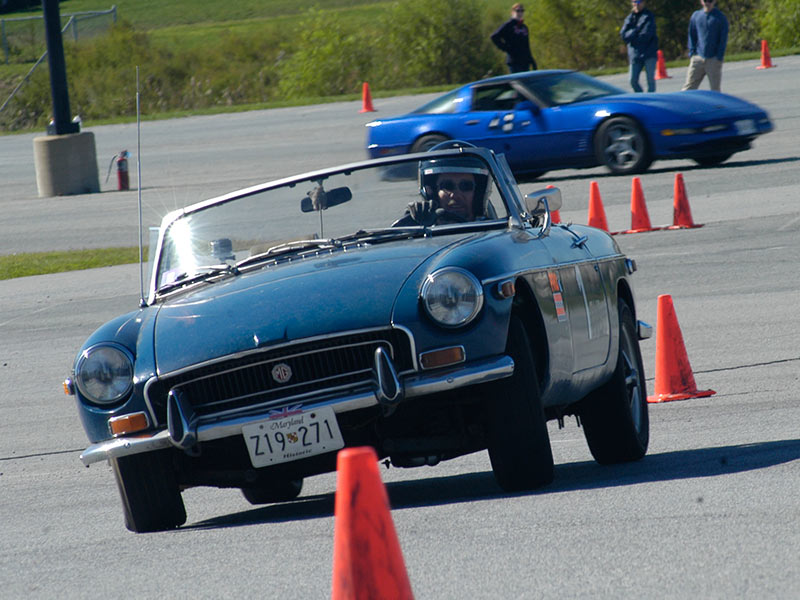 We ran at the local ballpark where the club put on a double day: four runs in the morning, then the course is reversed and tweaked and we come back and do four runs on that in the afternoon. My plan was to run my derelict MGB in the morning and then find something more competitive to co-drive in the afternoon.