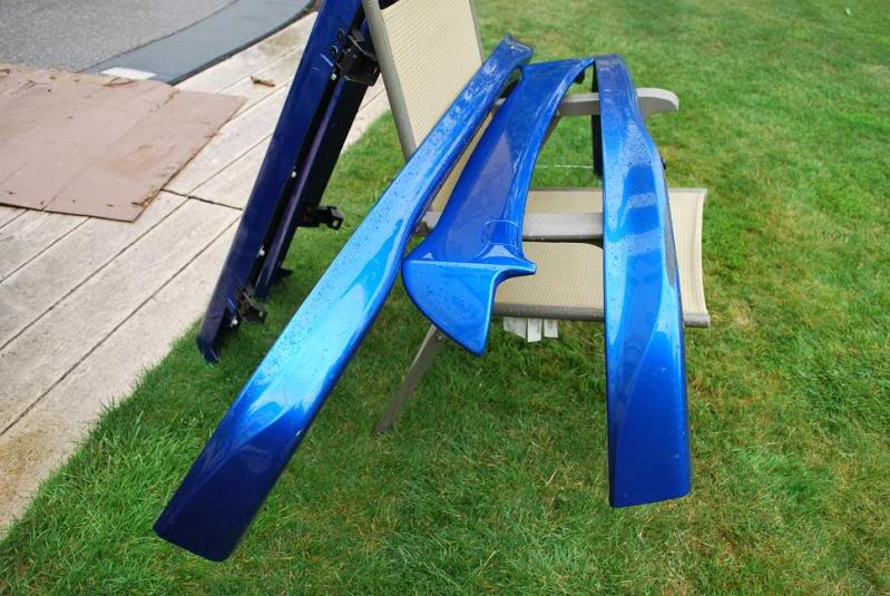 I have here a complete set from 2008 Honda Fit in Vivid Blue color. Front lip, Side skirts, rear lip, and rear spoiler. All in excellent condition except for front lip. It pretty much need to be repainted. Pictures would say it all. Asking $300 but would like to hear your offers. Name:  Lips.jpg