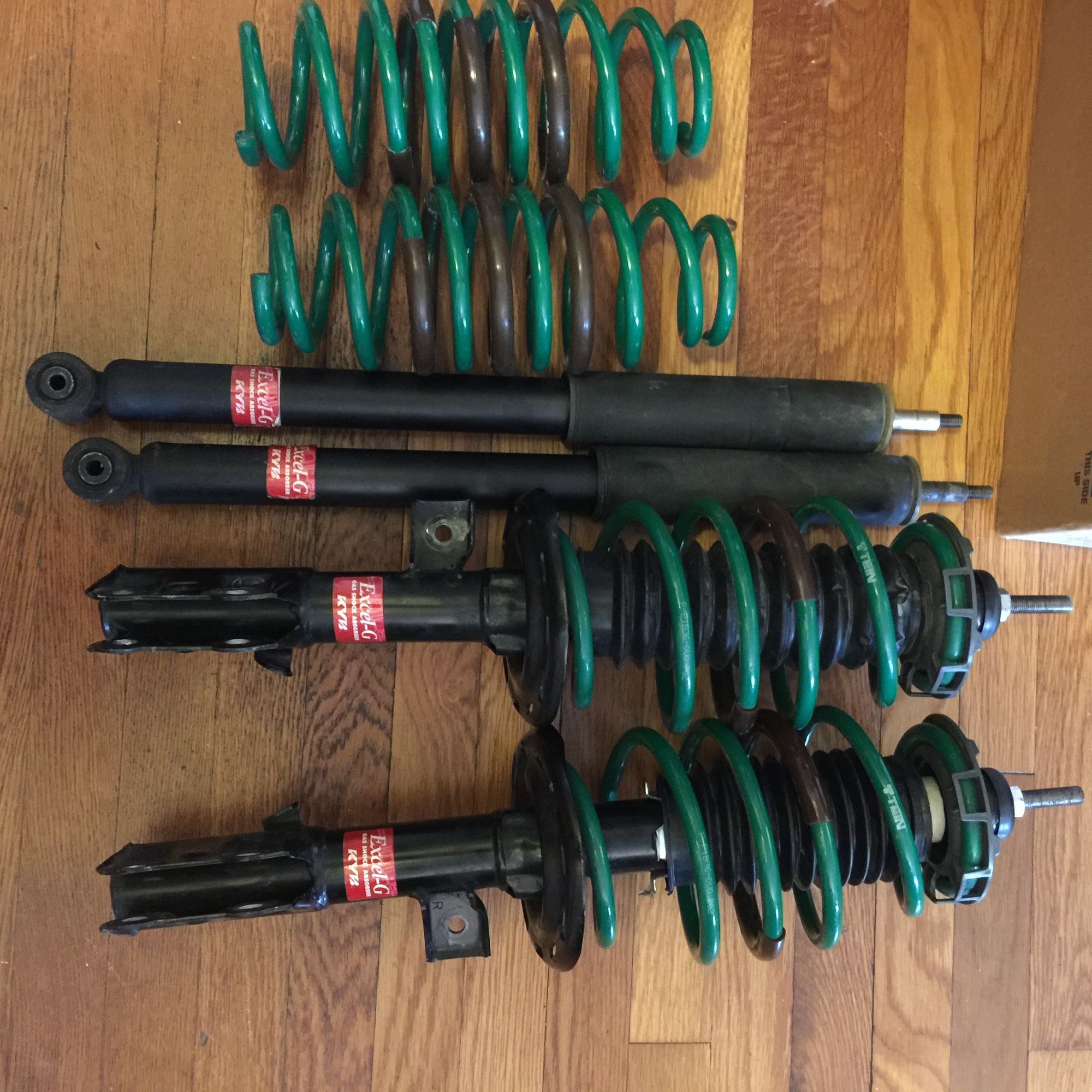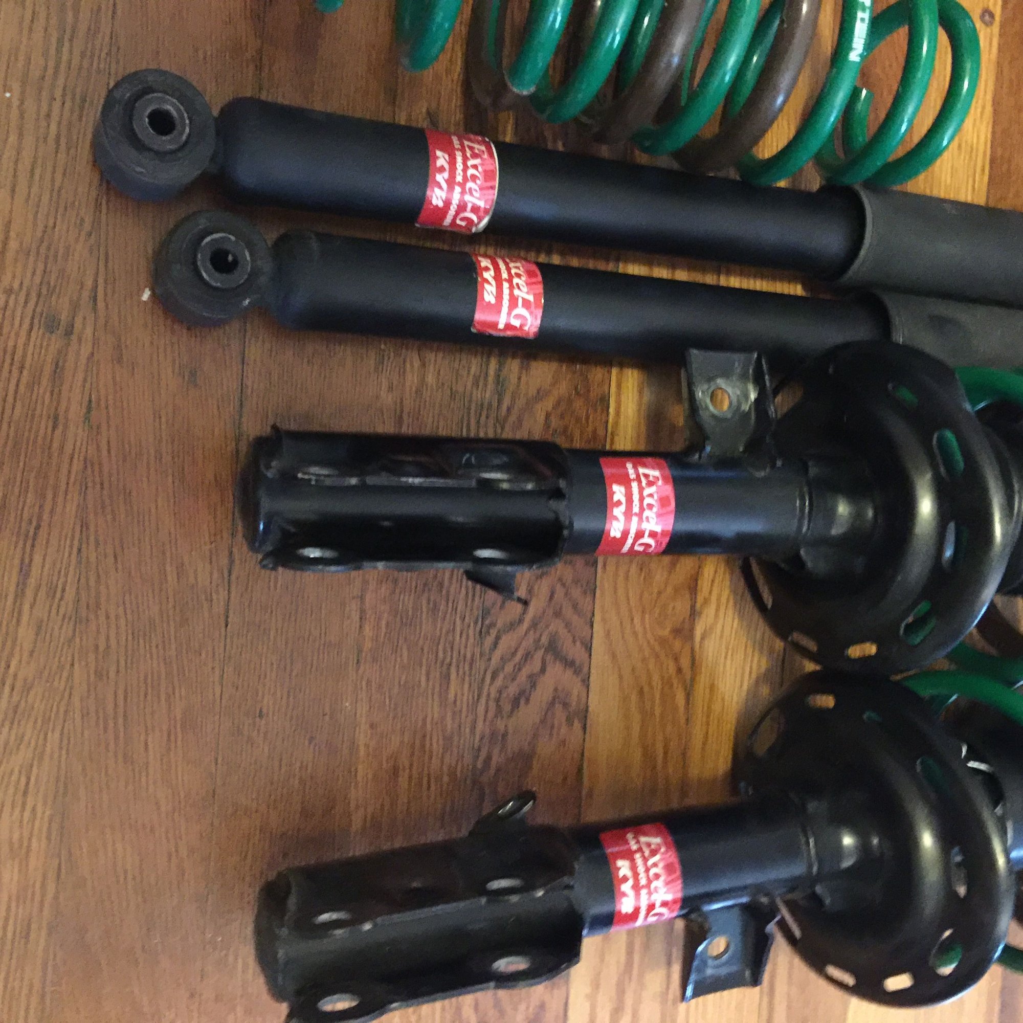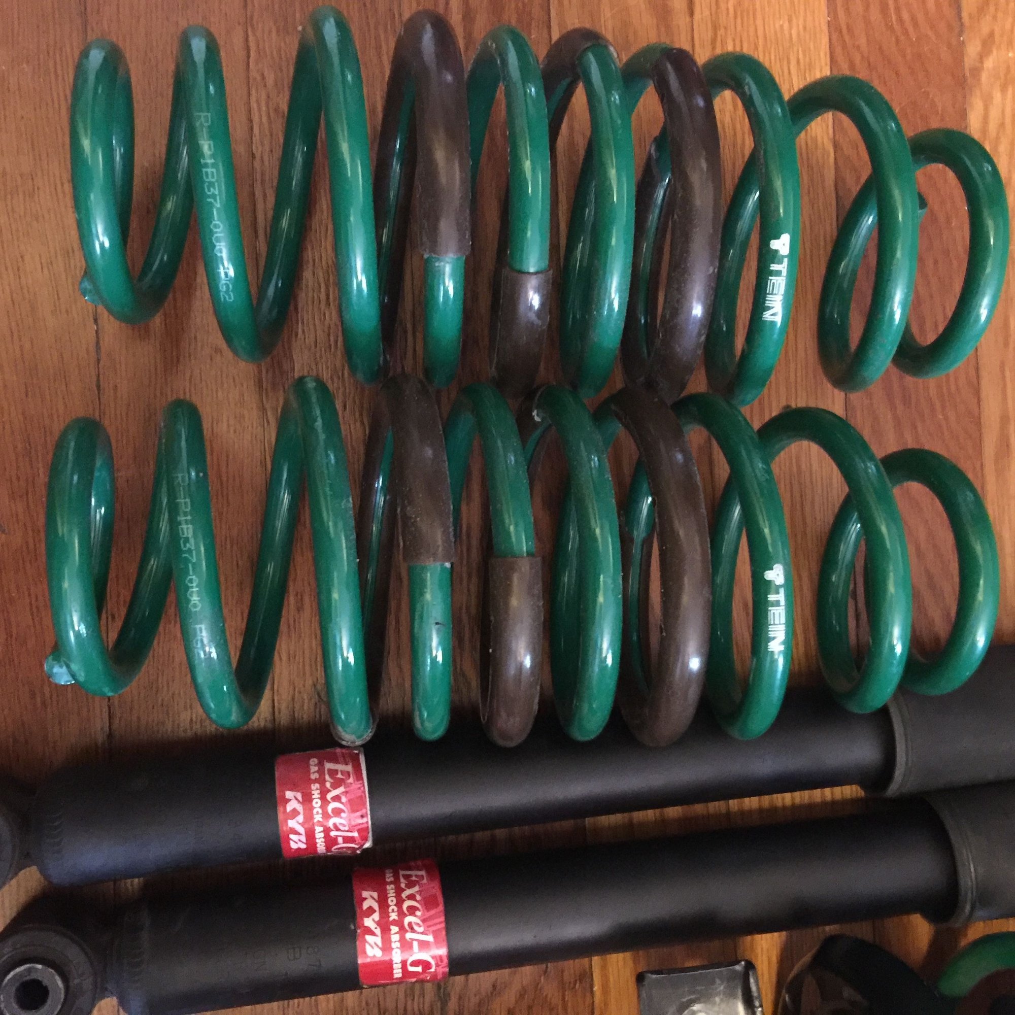 I am selling a set of Tein lowering springs that are 1 month old as well as kyb shocks fronts are 1 month old rears are 4 months old. No issues with them just decided to go with a new Function Form coilover setup. I paid 190 for the springs and 300 for the shocks. They also come with the front upper mount looking to get 200 plus shipping