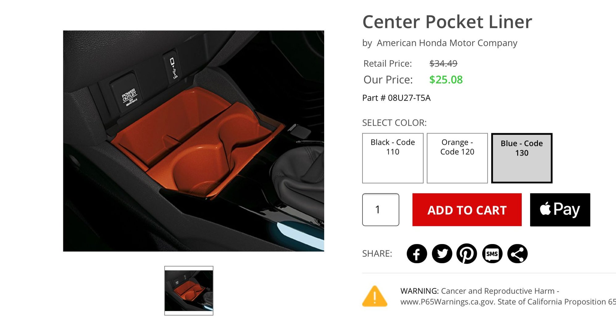Center Pocket Liner 08U27-T5A-130
