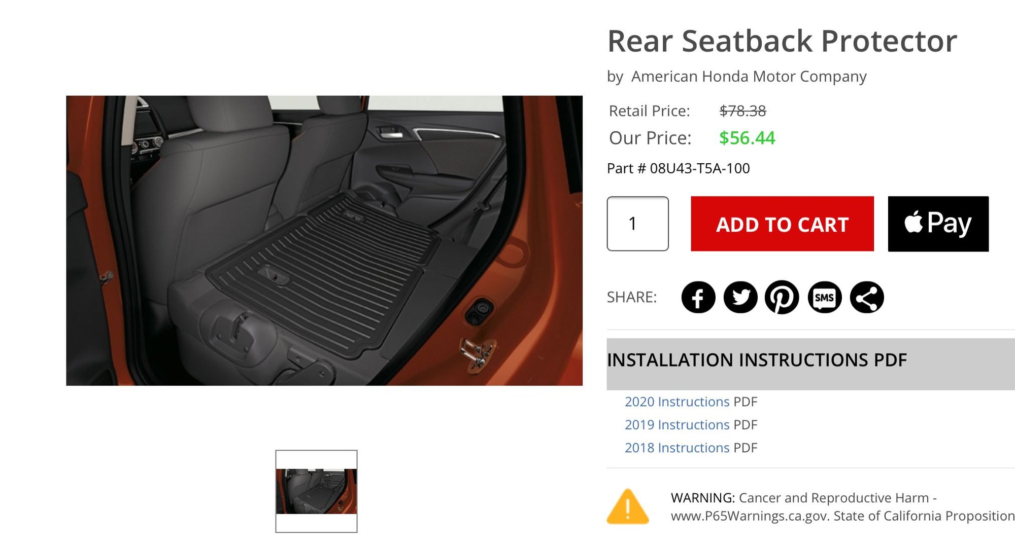 Rear Seat Back Protector 08U43-T5A-100