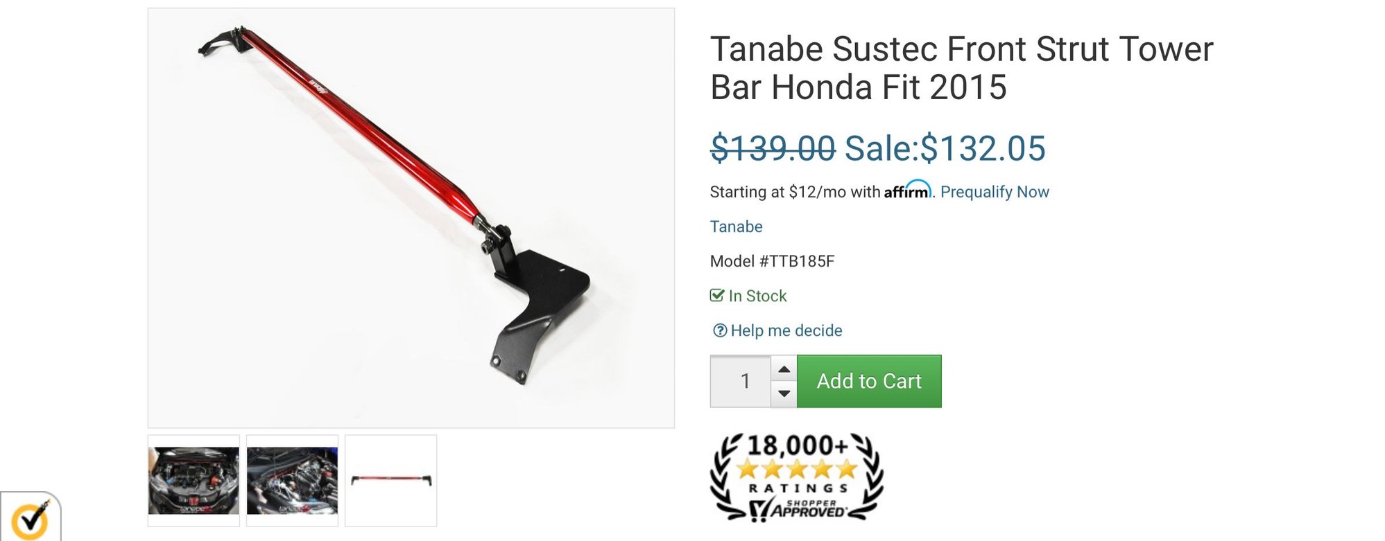 Tanabe Sustec Front Tower Bar TTB185F (Mounting hardware not pictured but is included)