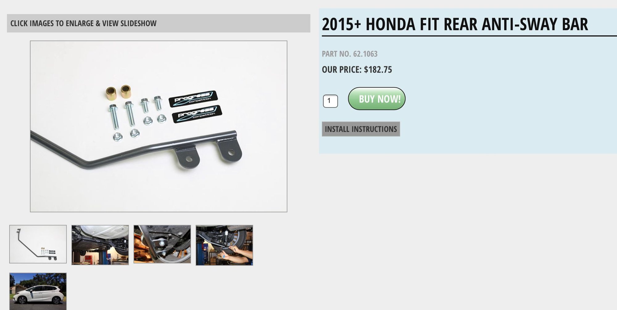 Progress Rear Anti-Sway Bar 62.1063 (Mounting hardware not pictured but is included)